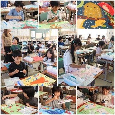 パかっと割れたたまごから飛び出してきます。何がでてくるかそれぞれに工夫を凝らしていました。夢の世界、ファンタジーの世界、冒険の世界、お化けの世界など楽しそうに描いていました。
