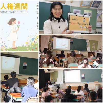 今日の全校集会は、人権週間に合わせて、人権の話をしました。自分らしさや自分のよいところを見つけてほしいことや自分だけでなく、周りの人も大切にしてほしいことを伝えました。
