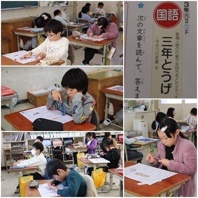 国語「三年とうげ」のテストでした。早めに終えて、見直しをしっかりとしていました。2学期最後の単元なので、満足のいく結果でしめくくりたいですね。