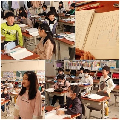 仲が良くなかった二人が、協力して壁新聞を仕上げたという事実。驚いたクラスメイトの気持ちを考えます。何があったのか、本当なのか、仕方なく仕上げただけなのか、想像した様々な思いを自分たちの言葉で表現しました。