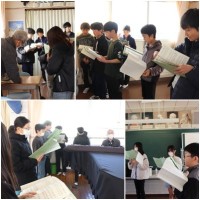 インクをつける前に、彫り忘れているところはないか最終確認です。自分でよく見て、友達にも見てもらい、担任にも見てもらって確かめます。個性的な素敵な作品が出来上がっていました。