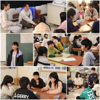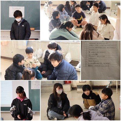 縦割り班で「あどじゃん」を行いました。なかよし班のお兄さん、お姉さんの言葉に興味津々な様子で、まだまだ話したりないところで終わりの音楽がなってしまいました。運営委員さんの司会進行がとても上手で、皆のよかったところを伝えてくれ、温かい雰囲気になりました。