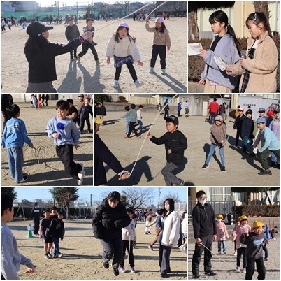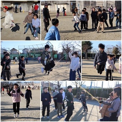 今日も練習に熱が入っています。今週末は大繩大会です。各クラス2チームに分かれて跳び、合計回数で競います。「何回跳べた?」と聞き合って、合計回数を出し、「記録更新!」と喜び合っていました。
