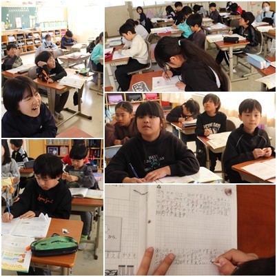 持っているお金でその金額のものが買えるか買えないかを考えます。基本の文をアレンジして、皆で問題を作り、楽しく取り組んでいました。「今日はノートにきれいな字で書く」ことも目標にしている人がいました。