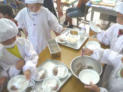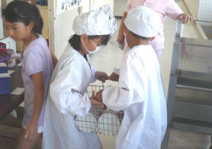今日も,一生懸命配膳していました。