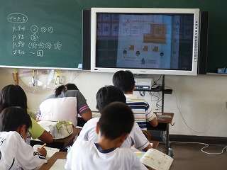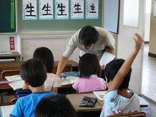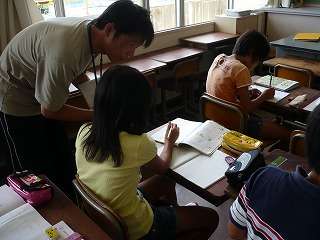 4年生の算数。問題ができたら先生に確認してもらいます。