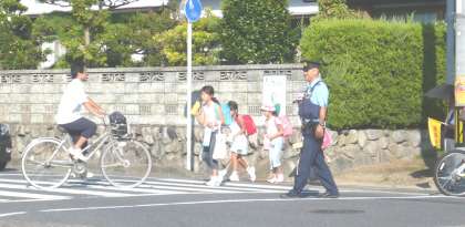 警察官の方たちも,效範小学校の子どもたちを見守ってくださっています。ありがたく思っています。