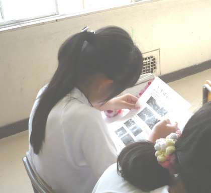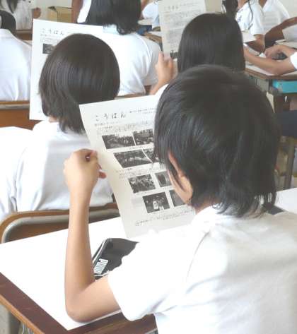配布された「こうはん」を,すぐに読みはじめる子どもたち。楽しみにしているようです。