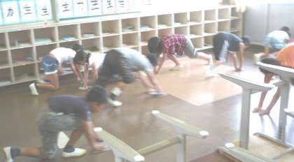 教室が狭く感じられますね。6年生がいつものように,一所懸命ぞうきんがけをしています。