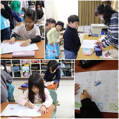 1年生の書写では、漢字のページになりました。手本とそっくりな字を書こうと集中して取り組んでいました。