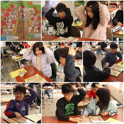 学校の中のいろいろな部屋を英語で表現します。言われた部屋を指さすポイントゲームでは、集中して単語を聞きとり、大盛り上がりでした。