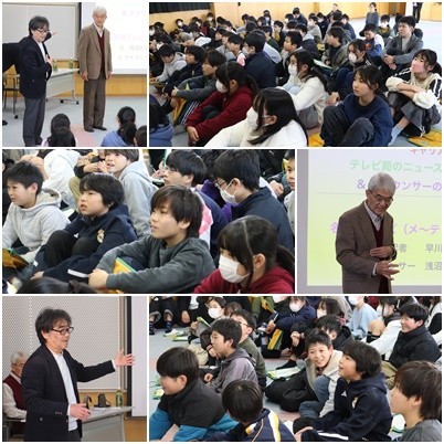 6年生は、1年間を通して、様々な職業の方にお話を聞かせていただきました。昨日は、最後の方、元新聞記者と元アナウンサーの方でした。新聞記事の作り方や心地のよい発声の仕方などについて教えていただきました。お二人は中学生の頃からのお友達で、息がぴったりと合っていらっしゃいました。職業のことだけでなく、人としてのつながりが素敵だと感じました。