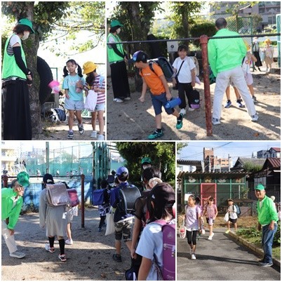 地域防災訓練に效範小学校・東山小学校の児童も参加しました。本校は、野球部・サッカー部・バスケットボール部をはじめ、多くの児童が参加しました。