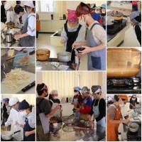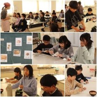 ご飯とみそ汁の実習です。グループで相談して、みそ汁の実を決めました。赤みそ、白みその選択にもグループのこだわりがあります。おいしさに大満足の様子でした。