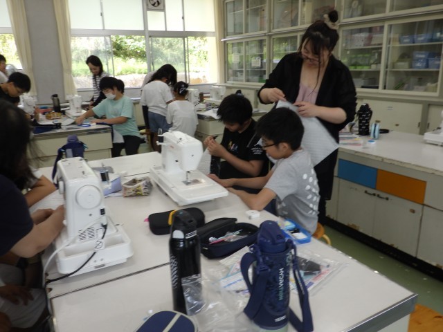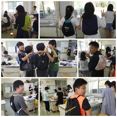 6年生 家庭科の授業で制作している巾着ですが、今週、次々に完成にたどり着きました。毎週お伝えしてきましたように、ここまで裁縫ボランティアの皆さんには大変お世話になり、子どもたちも感謝していました。完成した巾着をさっそく背負い、子どもたちはとても嬉しそうでした。