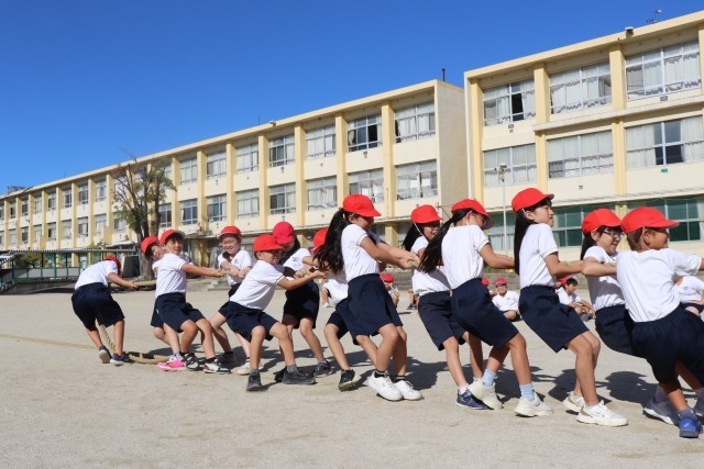 3・4年生の競遊「つなひき帝国2025」に向けて、グラウンドでは力のこもった練習の姿が見られました。