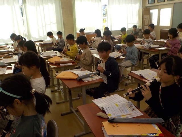 3年 授業風景 公開日 2025/11/06 更新日 2025/11/06 水南HP 3年生から始めたソプラノリコーダー。随分上達しています。先生の伴奏に合わせてリズムに乗って演奏します。 いいね(0)