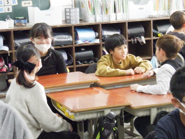 前回に続き、今日も質問ジャンケンを行いました。同じ学級の仲間であっても、こうした機会に話すことで新たなことを知ったり、気づいたりします。その中で自然に笑みがこぼれる温かな雰囲気の時間でした。