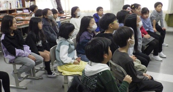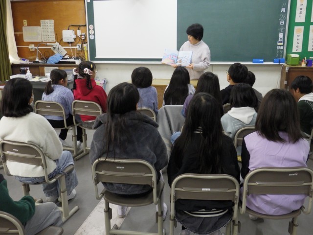 いつも興味のわく本を選んで、読み聞かせをしてくださっています。今日も子どもたちは、本に出てくる面白い言葉を一緒に繰り返したり、お話の世界にぐっと引き込まれて食い入るように耳を傾けたりしていました。今学期もありがとうございました。