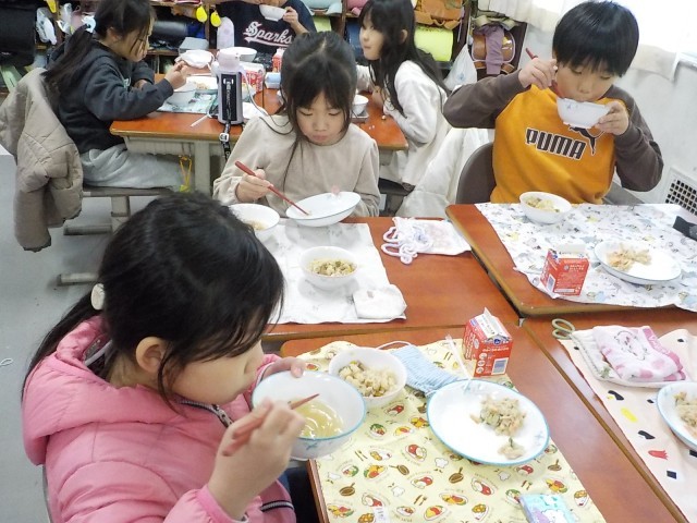今日の給食 公開日 2025/12/05 更新日 2025/12/05 水南HP 今日のメニューは、鶏団子と春雨のスープ、ヤーコンと大根のごまサラダ、中華五目ご飯、牛乳。サラダには瀬戸市産のヤーコンが使われています。ヤーコンのシャキシャキとした食感とやさしい甘みを確かめながら、味わっていただきました。 +1 いいね(0)