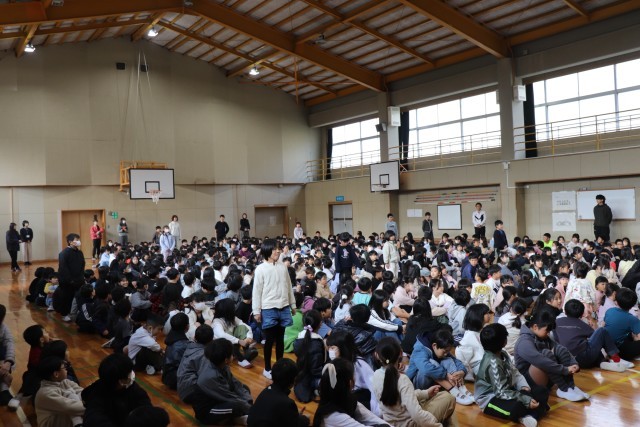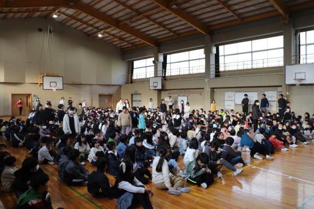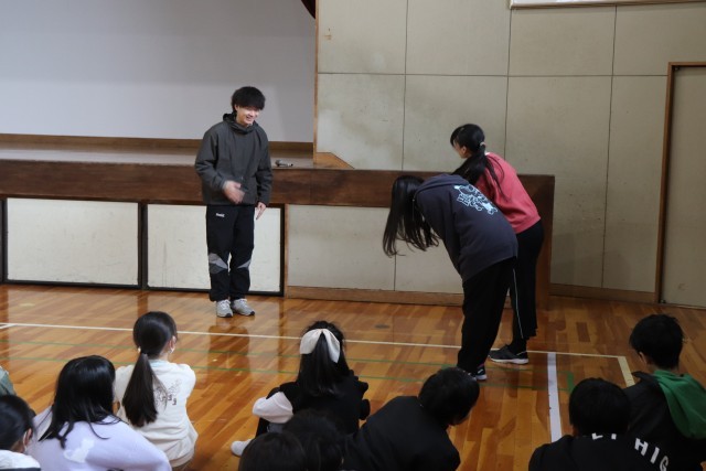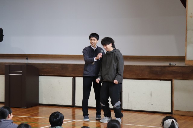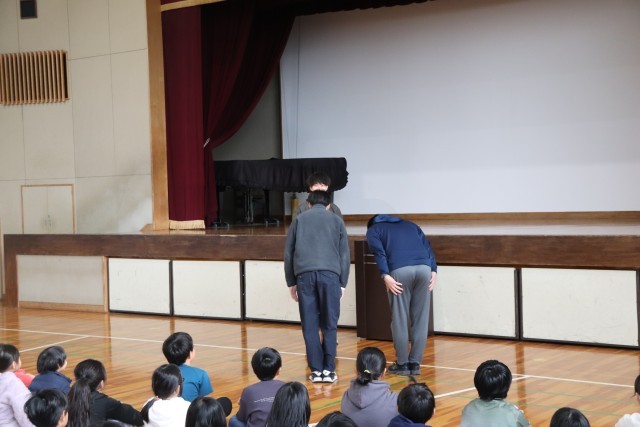 講話の時間は、先生達の演劇を通して、あいさつしてもらえた時、してもらえなかった時の気持ちについて考えました。
