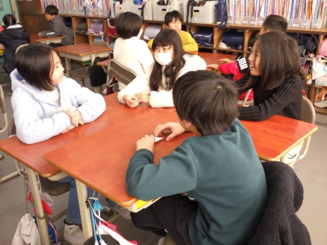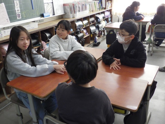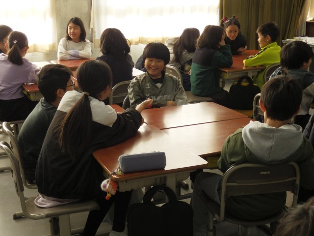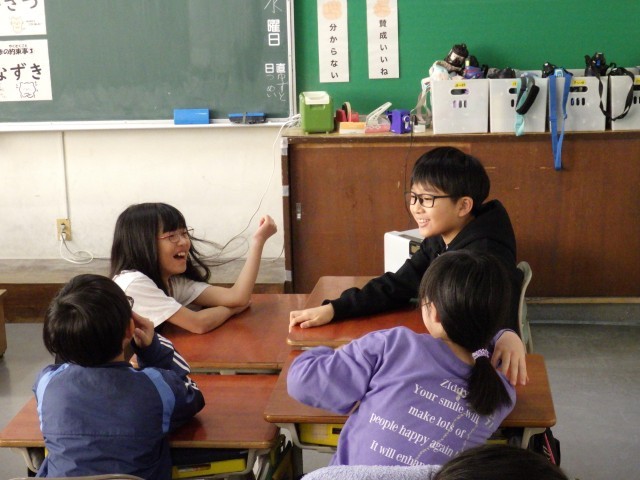 今日は、久々のアドジャンです。いくつかの話題について、自分の経験や考えを伝え合います。話しているときは、どの子も自然に笑顔になり、そして、話を聞く側も、約束通り、目を見て、うなずきながら聞けているので、とても温かな雰囲気になりますね。