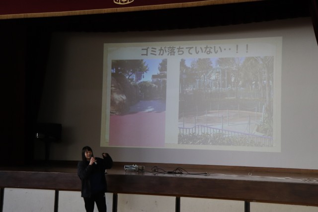 華やかなショーや楽しいアトラクションがある一方で、会場内にゴミが全く落ちていないことについて、今日の朝会で話がありました。