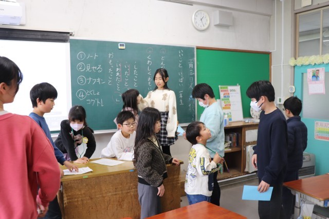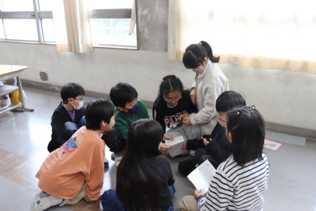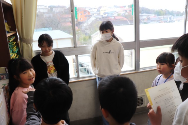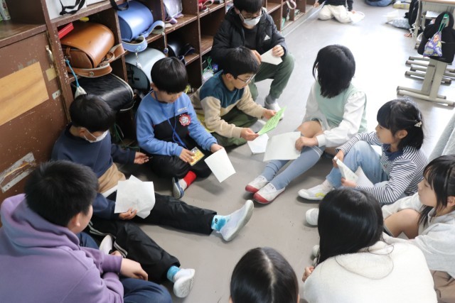 給食の後、一年間一緒に活動した縦割り班で集まり、6年生に感謝の気持ちを伝えました。