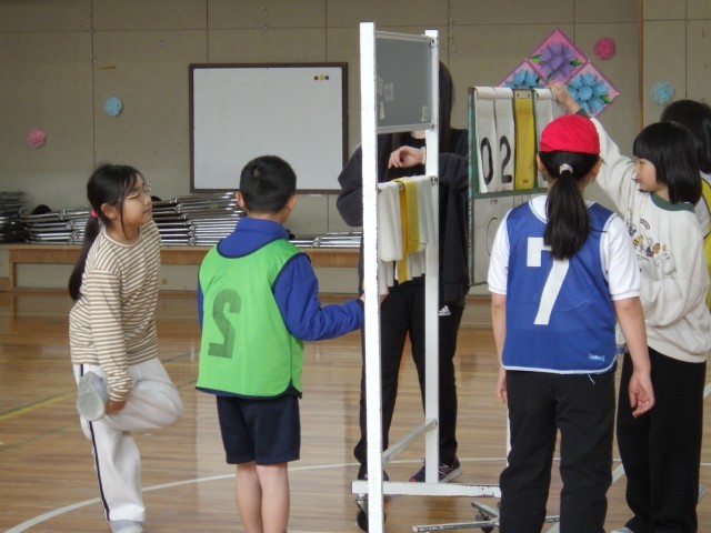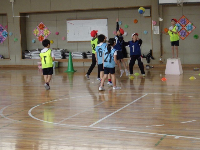 ポートボールの試合を行いました。チーム内で、お互いによく声を掛け合いながら取り組むことができていました。必死にボールを追う姿も多く見られ、とても勢いのある試合になりました。