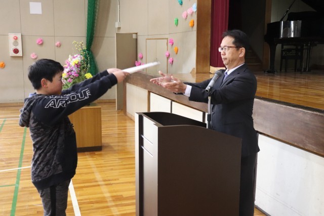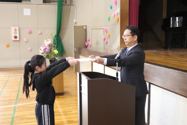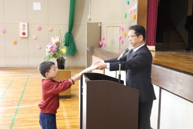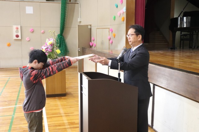 各学年ごとに、1年間の学業を終えたことの証である修了証を渡しました。