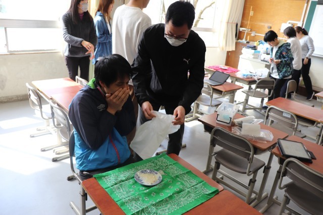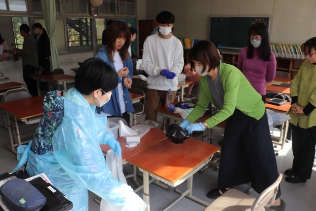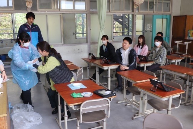 今日は、養護教諭が講師となって、嘔吐の対応について学習会を行いました。