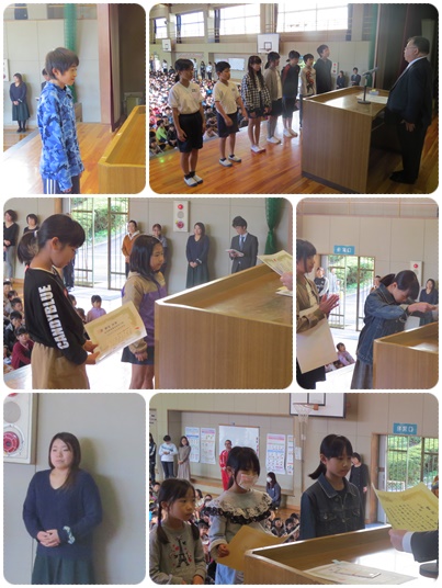 学校・学級をよろしくおねがいします 公開日 2019/11/05 更新日 2019/11/05 水南HP 朝礼を体育館で行いました。 始めに、校旗児童会役員と3〜6年生の学級委員の認証式を行いました。 次に、「秋季陸上競技大会女子4×100mR」「赤い羽根共同募金書道・ポスター」「防火作品コンクール書道・絵画」で優秀な活躍や賞を受賞した人の伝達表彰をすることができました。 また、今日から4年2組を中心に勉強を教えていただく先生の紹介をしました。 いいね(0)