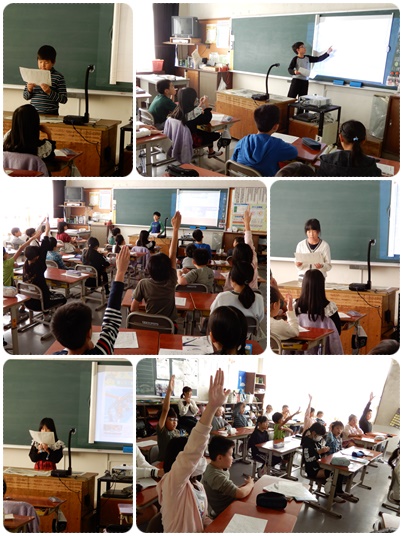 1枚の写真をじっくり見て考える 公開日 2019/11/07 更新日 2019/11/07 水南HP 4年生の国語です。スポーツや災害についての記事を取り上げていました。新聞記事の写真から、記者の意図を読みとったり、写っていない部分のことを考えたりして、堂々と自分の意見を発表していました。 聞いている人たちは、発表に対してポジティブな意見を述べていました。 いいね(0)