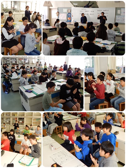 手話の体験では、日常生活で耳が聞こえない苦労をお聞きしたり、あいさつなどの手話を練習しました。また、自分の名前を手話でどう表すかを一人ひとり教えていただきました。