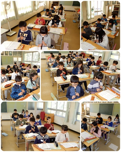 「いつだって!」 公開日 2019/11/08 更新日 2019/11/08 水南HP 4年生の音楽です。「いつだって!」という曲をリコーダーで演奏していました。シ♭の音を出す指が少しむつかしいようで、繰り返し練習をしていました。 いいね(0)