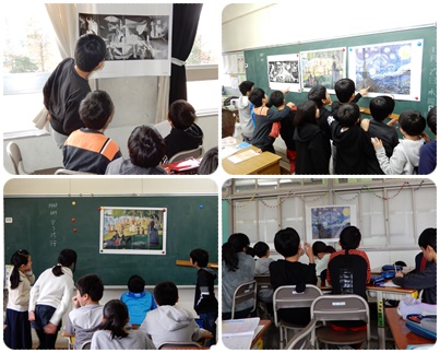 6年生の国語です。3枚の有名な絵画を見て、興味をもったり心ひかれる絵を1枚選びました。