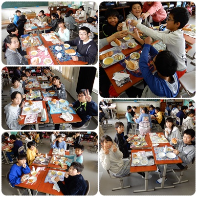 今日誕生の人のためにみんなで「ハッピーバースデイトゥ−ユー」を歌って、牛乳で乾杯していました。