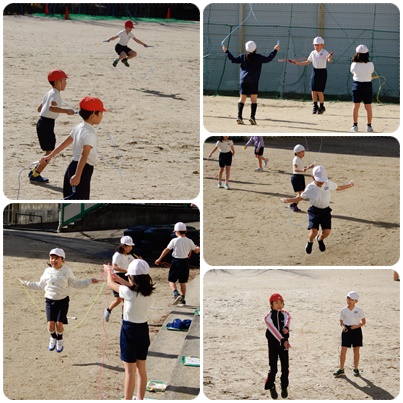 チャレンジなわとび 公開日 2020/01/09 更新日 2020/01/09 水南HP 2年生の体育です。なわとびで、両足跳びから二重と簿まで色々な跳び方にチャレンジしていました。 跳べて種目は、がんばりカードに記入していました。 いいね(0)
