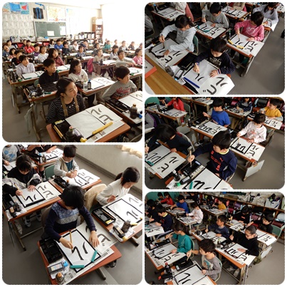 3年生の書写です。筆の入はいり、はらい、はねなどを意識してカタカナの練習をしていました。