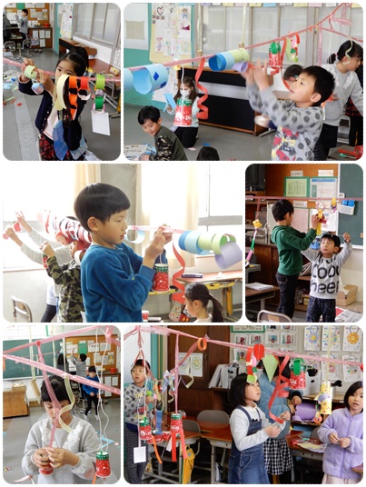 つないで つるして 公開日 2020/01/16 更新日 2020/01/16 水南HP 2年生の図工です。教室に張り巡らしたカラフルなラインに、みんなでつくったきれいなかざりや素敵なオブジェがつるされました。子どもたちは夢中になってかざっています。教室が夢の部屋のようになっていきました。 いいね(0)