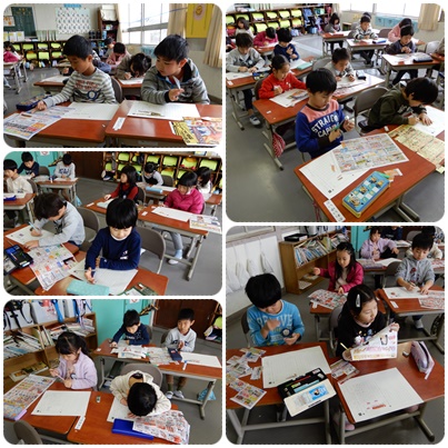 カタカナのかたち 公開日 2020/01/17 更新日 2020/01/17 水南HP 1年生の国語です。新聞広告からカタカナの単語を見つけて、貼ったり書いたりしていました。また、見つけたカタカナの言葉を使って文を作りました。 いいね(0)