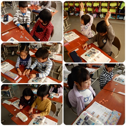 おかねを使って 公開日 2020/01/21 更新日 2020/01/21 水南HP 1年生の算数です。となりの子と協力して学習しました。お金の模型(10円玉、1円玉)を操作して、足し算、引き算の計算をしました。 いいね(0)