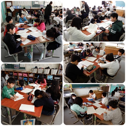 互いに教え合う学び2 公開日 2020/01/22 更新日 2020/01/22 水南HP 4年生の国語です。教科書の説明文について、興味をもったところを中心に要約した紹介文をグループで読み合い、意見を交わしました。その中から学んだことをプリントにまとめていました。 いいね(0)