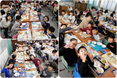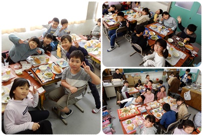 みんな明るく元気にモリモリ食べています。子どもたちは「シチューとサラダが最高!!」と言っていました。