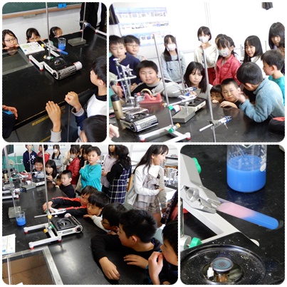 水はどのようにあたたまるのか 公開日 2020/02/05 更新日 2020/02/05 水南HP 4年生の理科です。試験管の水を熱して、水はどのようにあたたまるのかを調べていました。 試験管には、温まると青からピンクに色が変わる「し温インク」をまぜて観察していました。視覚的に確実に理解できる工夫がされていました。 いいね(0)