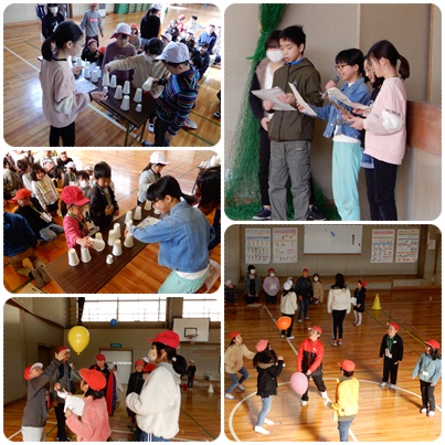 児童会主催のくすのき祭(縦割り班対抗ゲーム大会)が行われました。