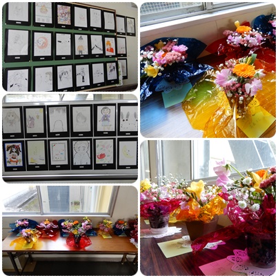 4・5・6年生のクラブ活動は今日が最終でした。フラワーアレンジメントクラブとまんがクラブの力作が展示されました。