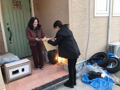 三学期も残すところあと少しとなり、子供110番のお宅に子供たちが作成した色紙を持って一年間のお礼に伺いました。