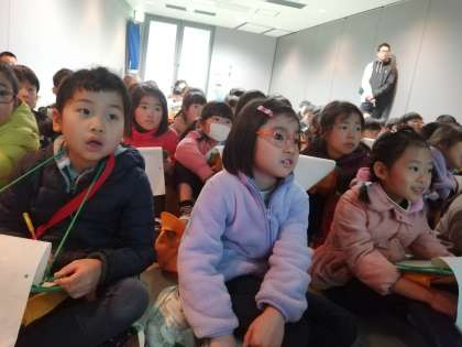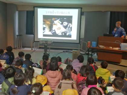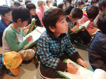 アクア・トトぎふに到着しました。 飼育員さんのお話を一生懸命聞いて、たくさんメモをとっています。