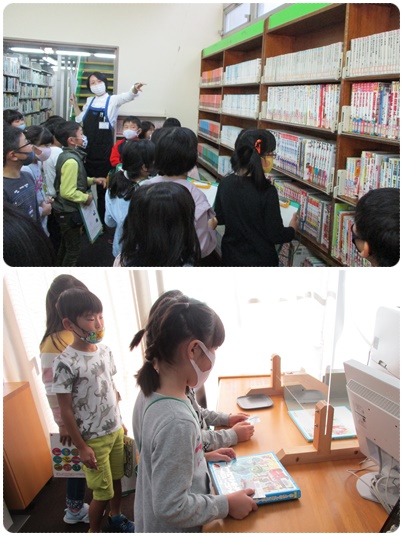 2年生図書館見学 公開日 2020/10/21 更新日 2020/10/21 地域とともにある学校 2年生は学年全員で、学区内にある瀬戸市立図書館へ見学に行きました。 図書館では、館内の説明や本の分類,図書館のはたらきなどについてのお話を聞いたり、読み聞かせをしていただいたりしました。 また、図書館では普段見られない返却ポストの内部や事務室を見ながら説明してもらいました。 たくさんの本の中から自分のお気に入りを1冊選んで借りました。 いいね(0)